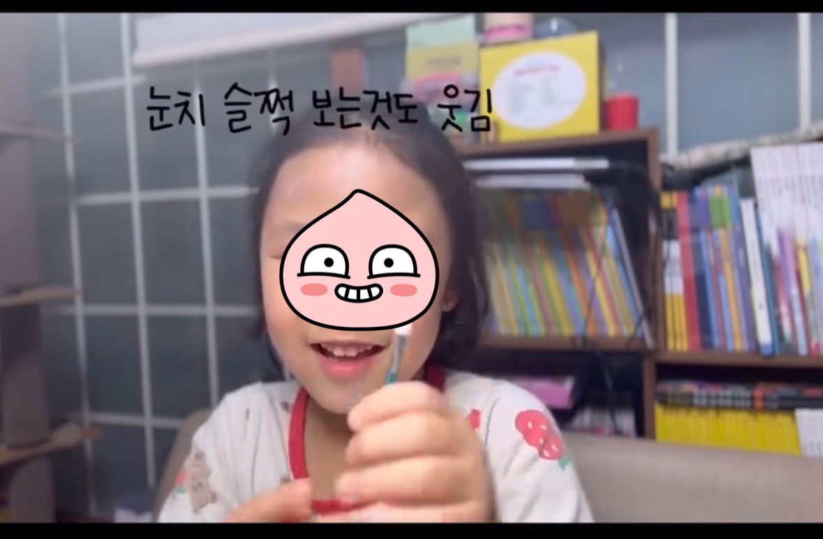 우선 아이가 말하는 주요 포인트마다 자막을 넣어줬어요. 예: “이건 내 최애 립스틱이에요~” 라는 말에는 귀여운 폰트로 자막을 덧붙이고, 실수하는 장면에는 “앗! 다시 해볼게요” 같은 문구를 넣어 웃음을 유도했죠.